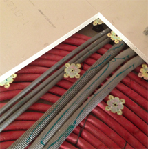 Holraumboden kann auch als Fußbodenheizsystem montiert werden. Hier kommen dieselben Platten zur Anwendung, jedoch werden diese vorher gefräst, damit die Heizleitung eingelegt werden kann.